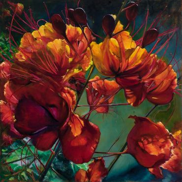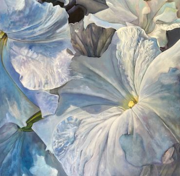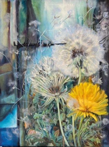 Currently, Becky paints in oils and mixed media/oils. Her love of nature is expressed in both her figurative and botanical works. She enjoys creating distinctive moods in her paintings; and revels in artistic license by freely adding images, changing colors and cultivating abstract elements. Becky’s fascination with people, honed by years of counseling, is readily evident in her work. She admits to be inspired by people in those moments when they are their most genuine: “It has been a privilege to know so many people in such an intimate and real way through my counseling practice; it inspired me to express that human connection in paint.”