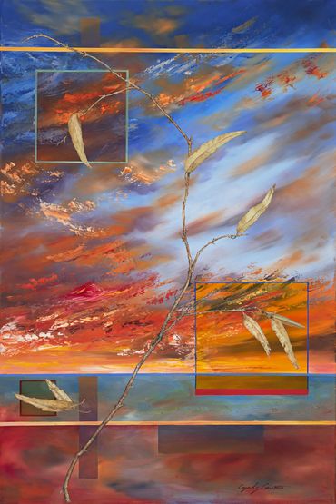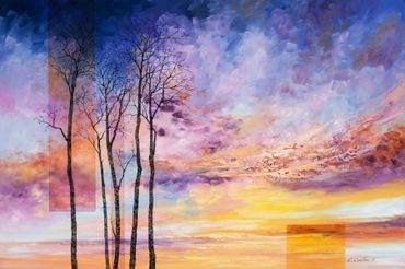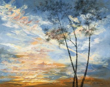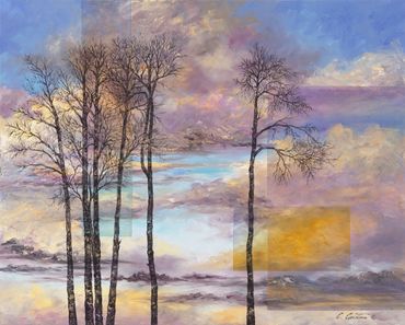 The artist has also exhibited a fascination of the character and personalities of trees. They often appear in Cyndy’s "Skyscapes," extending their limbs upward and reminding us of how much their stories resemble our own.