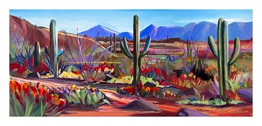 Joyful. Bold. Dramatic. These are the words collectors use to describe the vibrant artwork of Diana Madaras who has owned her gallery in Tucson, Arizona for 20 years. Voted Tucson’s Best Visual Artist nine times, Madaras is a colorist who paints in both watercolor and acrylic. Her diverse portfolio ranges from brilliant desert landscapes and floral scenes to expressionistic animals.