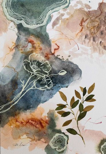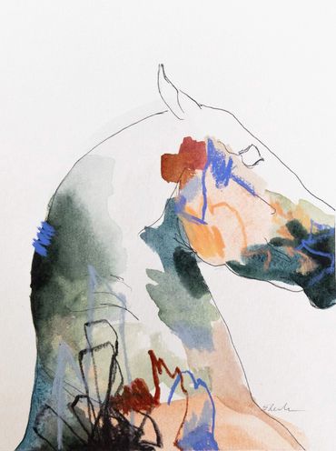 Ellen MacEwan is a contemporary mixed media artist whose work captures the sacred in the everyday, offering beauty and inspiration for viewers. Her paintings are characterized by fluid washes, serene color palettes, botanical and equine motifs, and expressive marks.