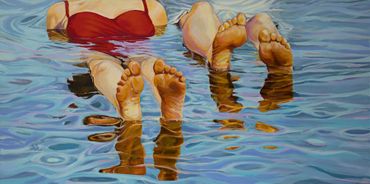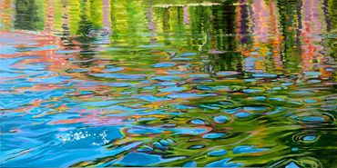 Everywhere Nemetz has lived, water has influenced her emotions. Her paintings of water reflect not only the beauty of water, but the necessity of water in our desert environment for our health, recreation, and happiness. So much of our enjoyment of the outdoors in Phoenix involves water: in pools, floating down the Salt River, boating on the reservoir lakes that ring Phoenix. Here in the desert, water is more precious than in any other location.