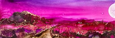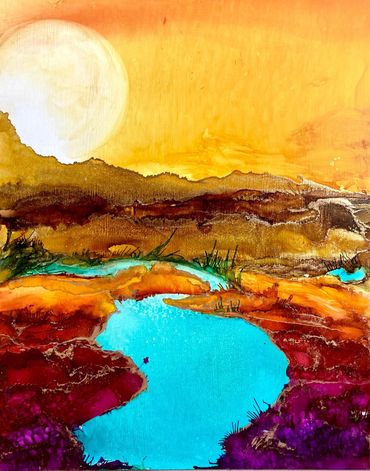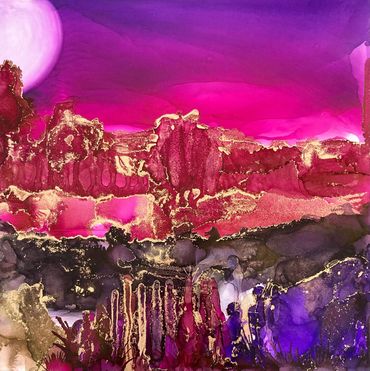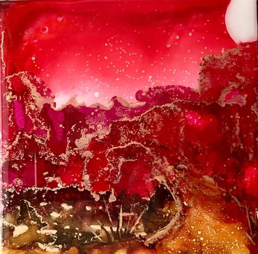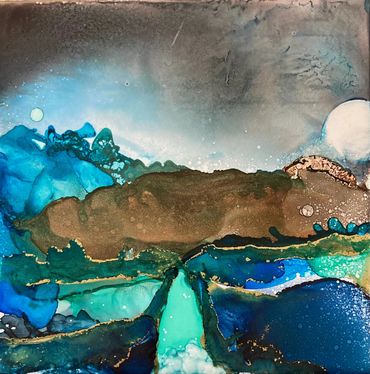 Medium: Painting- Alcohol inks on Tile or wood panel - finished with a coat of Resin