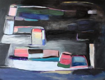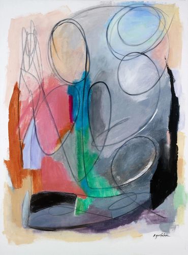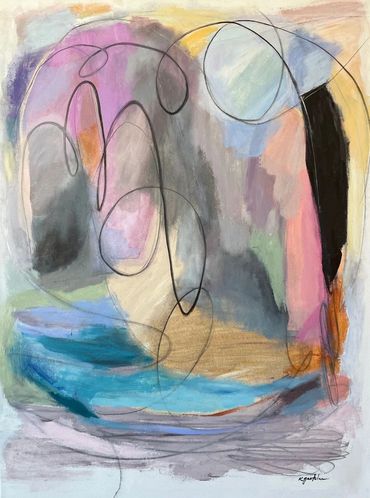 "My abstract paintings are an improvisation in color activated by Jazz music and inspired by our versicolored, stunning Southwest Skies.”