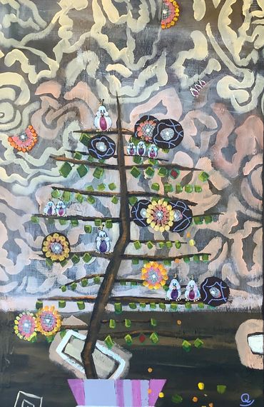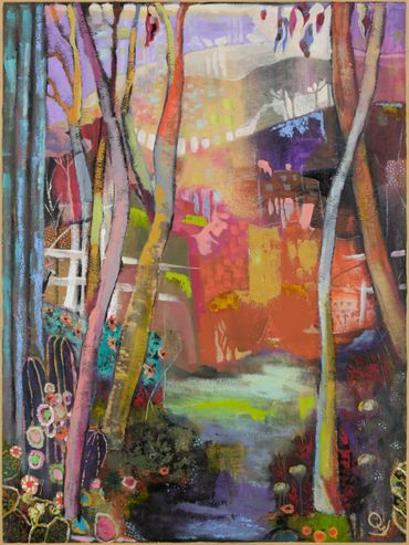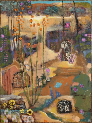 My studio is located at the base of the South Mountain Preserve in Phoenix, AZ. Tucson was my stomping ground most of my life and I sign my paintings with The Rocking Q, which was the family brand. My childhood was blessed. My Mother did not believe in store bought toys, and instead provided me with saws, hammers, piano boxes, art supplies - you name it, she made sure I had access to it. Animals were also a plenty in our household. I was often sick as a child and a garden was planted in front of my window so I would have beautiful things to look at during the day to make longs stays in bed a bit shorter. That environment of animals, kids, nature, imaginative play and love are the roots of my artistic soul and fed by the desire to share with others the joys in nature as I have experienced them.
