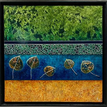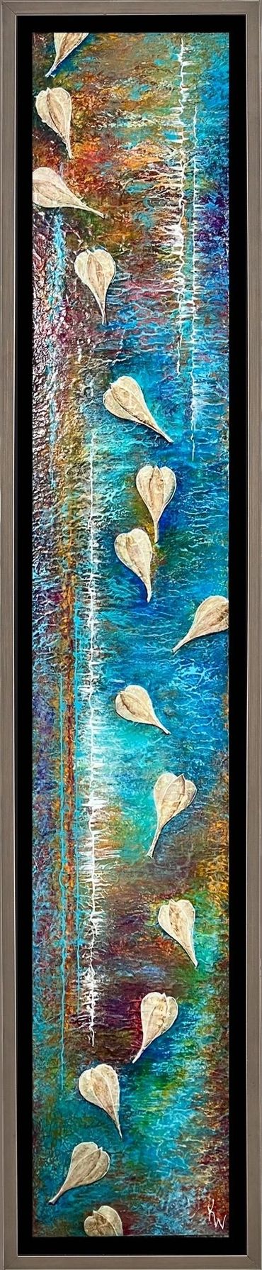 Kim continues to evolve her processes of the inclusion of actual botanicals in her art, each day making new discoveries in her studio. She also writes an original poem for each painting to further express her reverent gratitude for the gifts of nature. Kim's art is represented in galleries and juried and invitational exhibits nationwide and is included in private, corporate, and municipal collections all over the world.