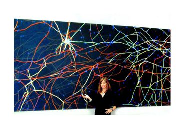 Some of her more notable works is a 30 x 7' installation in the lobby of the Sanford Stem Cell Consortium in La Jolla, CA. and the baseball players on the upper level of Chase Field in Phoenix, AZ.