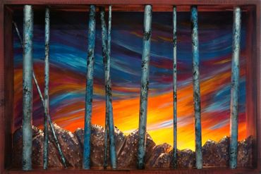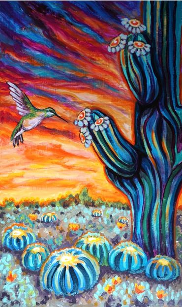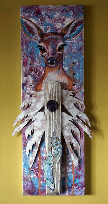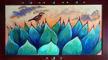 Meg received her BA in painting in 1988 from NY. After 15 successful years in the Phoenix ad biz honing her design and composition muscles, while also learning how to run a small business Meg launched her fine arts career in Arizona. Her work strengthens the therapeutic feelings we receive when we truly connect with healing essence of nature and the animal kingdom. All her subjects are close-up and personal because that way you connect at a deeper healing level immediately. She heightens the experience yet another level by incorporating reused materials (instead of canvas) reminding us how our choices affect the planet while simultaneously creating a feel good choice for environmentally conscious consumers. Many of her pieces are even outside appropriate revolutionizing the outdoor art category. Her work is represented at the Ian Russell Gallery in Prescott, AZ and many other stores across the west. You will see her at art festivals in Arizona, Colorado, New Mexico and Utah. She has sold over 1650 originals and thousands of prints.
