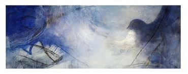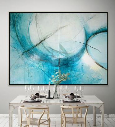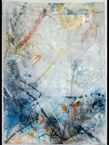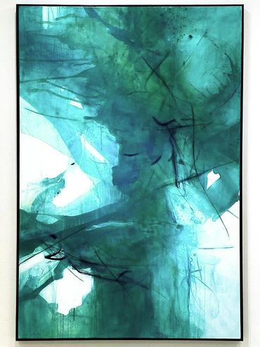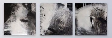 Hansegard paints large-scale abstracts through multiple transparent, watery layers of paint, that are laid upon the textures found below, and created through the use of graphite, charcoal, and pastel. These compositions explore shadow and light and represent the inner and outer journey, as the painting comes to formation.