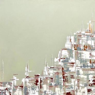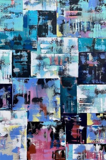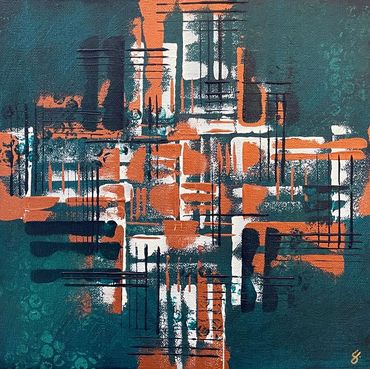 From her studio in Arizona, Sarah combines vivid colors, dynamic textures, and geometric forms to create bold abstract compositions. Her abstract style has been built from years of practicing art in a variety of styles and mediums. Sarah is inspired by the beauty of the Phoenix area, often using colors and abstracted shapes she sees along the hiking trail.