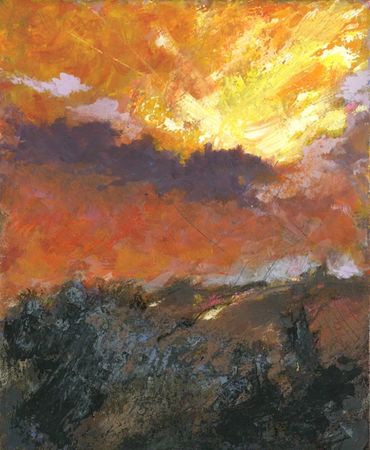 My art is mostly the play of light and texture of landscape elements such as oil jack pumps, utility poles and wires, city structures, twisted tree trunks, and the surrounding atmospherics. My approach is based on interpreting rather than replicating what is observed. It is the freedom to explore, to create what one feels, to embrace inadvertent paint drips and marks, and to accept unfinished borders as part of the finished piece.