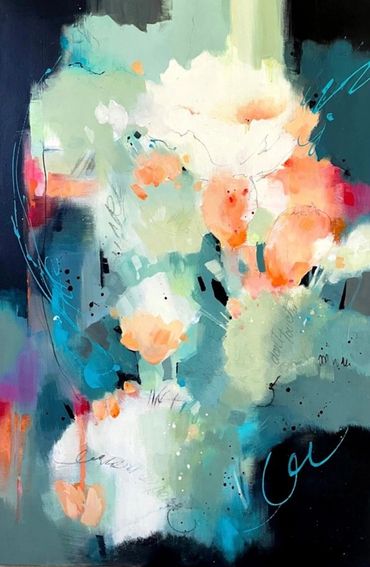 Intuitive painting is spontaneous and comes from the heart, but there is also enough "intentional" work to bring it together as a dynamic, unified whole. I give up control of the outcome and let the painting take me on a journey. However, knowing the principles of design gives me the ability to make the required adjustments and decisions with each stroke along the way. My bywords are: Spontaneity and Freshness! It is my hope that these paintings convey the energy and joy that are present during my process, and that those feelings will live on with the paintings in the homes of their collectors.